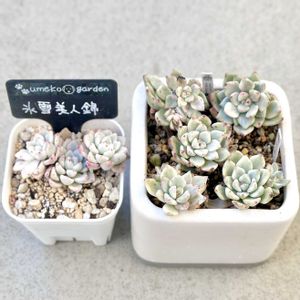 マルシェでお迎えした 【左】『氷雪美人錦』です。 これは正名ではなく^^;正しくは 【右】『ファントム錦』です。 きっと『ファントム』も知らないんでしょうね…^^; もし持っている方がいれば『ファントム錦』に札を変えてあげてください。 そもそも美人シリーズはパキフィツムですから┐(´д`)┌ヤレヤレ勝手に美人シリーズを増やさないでください。 【追記】 新たに『フォックスクィーン錦』で流通していました┐(´д`)┌ヤレヤレ 最近は別名のペースが早すぎる