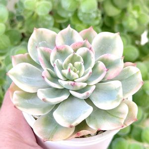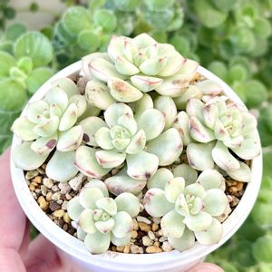 我が家の斑入り代表格 姫秀麗錦さんまたの名をミリナエ錦さん? いっときはスッカスカのヒョロヒョロなお姿になってましたが 切って刺してをやったら見事復活✨️ 多肉さんのこういう復活劇が見られるの ホント楽しいです⤴️