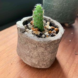 100均サボテンに自作鉢🌵🏠 フチをちぎってちょっと和風な感じに色付け。丸く出来なくて歪な形😅 黒い化粧砂を入れて、もっと渋くしたいな。 白竜丸はタグ🏷で調べたら、白やピンクの花が咲いてるのを見たけど、いくつか花の色があるのかな…🤔
