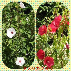 こんばんは😃🌃✨ 馬見丘陵公園⛲を🚶ウォーキング 紅白のアメリカフヨウの花🌸