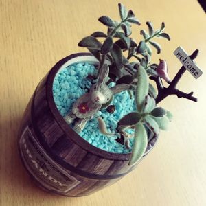 チョット徒長ぎみのうさぎさん(;ω;) でも、お気に入りのリメ鉢に植えかえてみました (*≧艸≦)