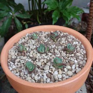 一昨日は朝から買い物に出かけていたので、その時に碧のひとみ用の鉢を探しに近くも遠くもない園芸店で、水色のキレイな鉢を見つける👀✨ その後新しくオープンしたHCへ💡多肉さん達も入荷したてだろうし、偵察がてら行って見たら…以前から探していたブルーヘイズが小さくてリーズナブルだったので、こちらもお迎え(*´ω`*)🎵 それぞれを昨日に、碧のひとみは45さんから頂いた土を使って植え替えて、ブルーヘイズはいちごさんから頂いたイチゴ柄のデコパージュ鉢に植え替えました😆💖 そして少し前にネットでポチした「ハイブリッドセダム」💡セダムと言いつつ、実はミセバヤと同じヒロテレフィウムと、子持ち蓮華と同じオロスタキスの掛け合わせでヒロスタキスって仲間だそうで😄本当はカラスバミセバヤみたいに紅葉が紫になるダズルベリーを3つポチしようとしたら、在庫は1つしかないと😅なので緑の葉の縁が赤くなるライムジンガー、赤くなるファイヤークラッカーも1つずつお迎えして、こちらは100均のプラ鉢に植え替えました😉✴️長さがバラバラだったから、とりあえずちょんぱさくさく✂️✨ どれも今後が楽しみです😘❤️