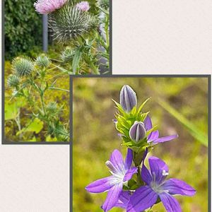 共に帰化植物🍀 アメリカオニアザミは 要注意外来生物… でなくても、 トゲトゲしくて 近寄りがたい。 絵に描きたいような お花なのだけど💓 キキョウソウは 在来種にも似た姿で トゲトゲしい気持ちを 和らげてくれます❣️