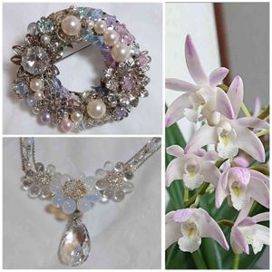 こんにちは🍀 今回はGSと関係なくてすみません😅🙏 昨日の母の日に娘からもらった手作りのアクセサリーです📿 見たいと言ってもらいましたのでアップさせて頂きます🤗💕 ↑はスワロ&スワロパールのブローチで、↓はスワロ&チェコのネックレスです✨💎✨ 元々は私が始めたビーズアクセサリー作りですが、私はいくつか作ったら満足してしまい、やめてしまいましたが😅、娘はお付き合いで始めましたが、はまって長くやっていました。 今は指が痛いのでやってなかったのですが、私のために作ってくれました🤗💕 ビーズの種類・形・大きさ・色選び、配置など全て自分で考えたオリジナルデザインで、世界でひとつしかないものなので、とっても嬉しいです( ꈍᴗꈍ)💖 ブローチには、あーちゃんの本名アゾレ(ライトアゾレ)も入っていま〜す(。•̀ᴗ-)✧💎 お花は、優しい雰囲気が合うかな〜と思ったデンドロビウム キンギアナムです🤍 いつもはほんのりピンクですが、今年はなぜかけっこうピンクっぽいです🙄 とってもいい香りがする大好きなお花です🥰 デンドロビウム キンギアナム ラン科 セッコク属 (デンドロビウム属)
