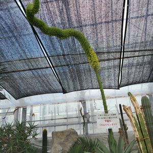 珍しい花が咲いたとの情報を得て、県境を越えてちょっと遠出をしてきました。 50~80年に一度だけしか咲かないそうです。とても大きかったです。 曲がりくねって温室の天井まで届いてました。 全部撮りたかったので小さくなりました。アップでご覧ください。 福島県郡山市逢瀬公園