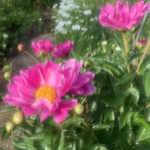 おはようございます♪ 芍薬の季節になりました🌸 ✳︎八重咲きはまだ蕾です。 昨日の日差しは朝から強かったのでこんな色の感じ🌸 3枚目は曇り日撮影🌸 立ち姿の美しい芍薬を見習わなけばです😁