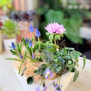 暖かさに誘われてお花寄植せ😆 ムスカリに💘🎶