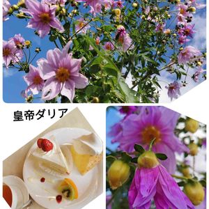 美しい青空と🌸皇帝ダリア🌸 高い所で咲く皇帝ダリアですが、少し斜めに傾いていたので、いつもより近づけて撮れました🤳 皇帝ダリアリレーに参加させて下さい🤗🎶💕