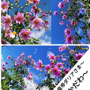 皇帝ダリア 花言葉は乙女の真心 ファンタスティックブルー ピンクワールドへようこそ 皇帝ダリアリレー enjoy & smile happy⤴︎ 今日を今を生きること