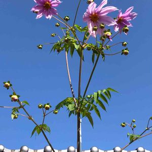 ♡皇帝ダリア開花♡ 屋根より高い皇帝ダリアが快晴の元 一輪開花🎶🎶🎶 遅くなっちゃった 🏷皇帝ダリアリレー初参加 💙 🏷金曜キラキラ 🏷金曜日の蕾たち 参加します💙💙💙 去年は11/15,一昨年は11/25に開花♪♪♪ 3メートルの脚立🪜に乗ってもまだまだ届かない😭 19日はピンクの日だった 🏷追加します🤣