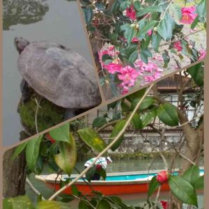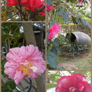 柳川藩主立花邸のお庭を歩いて見ました ⑥ 終わりかけの椿 幾つか綺麗な椿が咲いていました 大きな壺 懐かしく感じました