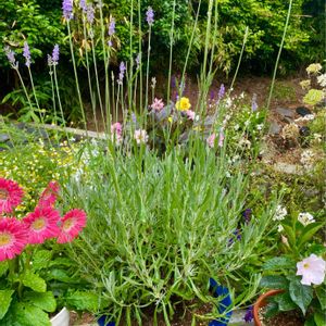 ラベンダー グロッソです。 昨年の秋に小さいポット苗で購入し、 冬は霜の降りる庭でおじいちゃんからもらったこの渋い植木鉢で過ごしました。 中々花が咲かず、今か今かと待ち侘びて‥ やっと咲きました😂