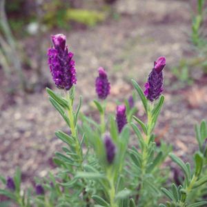 ご近所さん🍀 ラベンダー💜 【ファーンリーフ・ラベンダー】 ルミエールみたいに3本立て🎶🕯 高さ1mになる常緑低木。茎は直立して分岐し,葉は対生し2回羽状に分裂します。 花は茎先の輪散花序につき・花穂は長さ2~7cmです。花序は枝分かれします。 花は青紫色です。 別名・レース・ラベンダー ムルチフィダ・ラベンダー エジプシャン・ラベンダー 原産地・ヨーロッパ中部,南部,南西部,北アフリカ 【山肌の濃紫なる冬日かな】石橋秀野