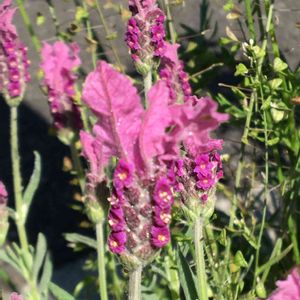やわらかな葉っぱ🌿に やさしい色の花🌺 ラベンダー ストーチャ・バンデラピンク おだやかな春の陽射しをうけて 微笑んでいます💓