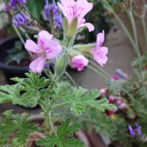3年前に寄せ植えしたローズゼラニウム💮の小さな花数が増えていました⁽⁽ (♡ˊᵕˋ♡) ⁾⁾