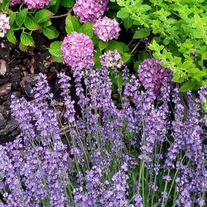 今日のお花 ラベンダーからのミントからの紫陽花🌺☘️✨ 写真は先週ので、今のラベンダーはもう終わりかけてます。来年もたくさん咲いてね~😊