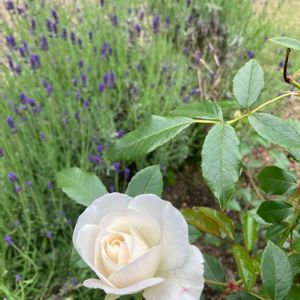 アイスバーグとラベンダー♪ ラベンダーの近くに移植したので、私の見たかった情景に💓 アイスバーグが次々咲いてくれてます。ラベンダーは、五分咲きかな? 💜🤍💜🤍💜🤍💜🤍💜🤍💜🤍