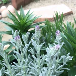 ラベンダー(シルバーアヌーク?だと思います。違ってたら教えてください) 数年前に購入して育ててました。親株はダメになってしまったけど 挿し木していたものが育ってくれました。 ここまでこんもりしてきて またお花がみれます♡ まだちゃんと開花してないけど ほんのり色付いてる蕾もかわいいです♡