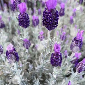 🌿フレンチラベンダー🌿🌿 短く刈り込んだのが良かった。 綺麗に咲き出してきた 可愛いウサギの耳ちゃん達💕 大きな株になる様に大事にしたい。 来年はもっと大きくなってね🌿💜🌿💜