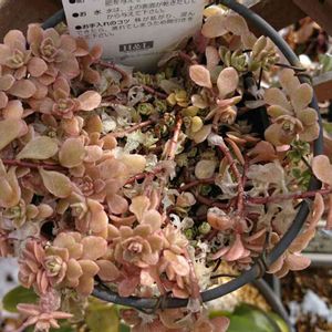 寄せ植え用のセダムを探すホムセン巡りをしましたが、どこの多肉も壊滅状態(根腐れ、根腐れ、根腐れ、とちょーーん) 明日(20日)「多肉植物の寄せ植え教室を行いまーす!」とやる気満々の店内アナウンスかけてるグッデイも売り場の多肉は悲惨祭り。 もう何を信じていいのかわからず駐車場へ戻る途中、処分品売り場に目をやると、売り場多肉の3倍元気なこの子を発見!!! 税込106円なら問題なーーーいv(o ̄∇ ̄o) ♪