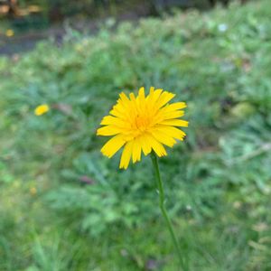こんにちは 今日も雨です☔ 先週の木曜日晴れた日に📸 ブタナの群生🌿🌼🌼🌼🌿 2枚目はアップで🏵️ 🏷️日曜ビタミンカラー♪