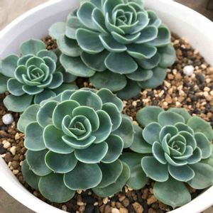 比較〜 上は今年の6月 下は今日💕 前は子分けしたけど、群生さすか、また分けるか… 分けない方が育ちがいい!! 少し詰まってるのは、夏の間水控えてたからかな? 葉の形は6月のが好き〜(^^)