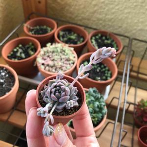 3/20に仕立て直しで出来た葉挿しっこを 3/24に職場のデスクに持ち込んでみました! 3/6発根・発芽発見! 白ボタン、ブロンズ姫はやーい!!