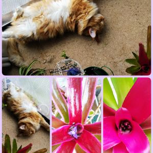 おはようございます😸 今日のお花アンスリウム💕 我が家のは上ミニサイズです又🐈🐾くぅ参加😹 下は先日のベゴニア館にてのpicイキイキしてます💖