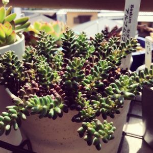 アクレアウレウムと一緒に買ってきたのは ブラックベリーと斑入りタイトゴメ💕 最近タナベフラワーさんは、 寄せ植えに使いたいセダムも豊富で嬉しい😆