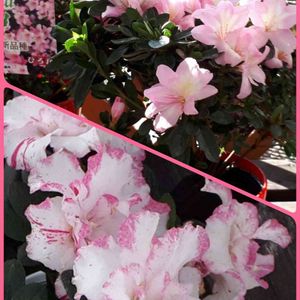 おはよーございます☀️ 大福のお散歩中に寄る、近くのHCのお花たち🚶♀️🐕💨 今日は『アザレア』😊☝ ⬆️お花の真ん中がクリームホワイトで、外側が可愛いピンク💗 ⬇️白にピンクの縁取り💗 どっちもメッチャ可愛い🎵 うちがお迎えするとしたら… ⬇️の子かなぁ😄💕