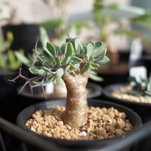 オトンナ・ユーフォルビオイデス こっちのコももう完全復活かな!葉っぱが大きくてとげもしっかり出てきた!足元がポッチャリしてるのもかわいらしい✨