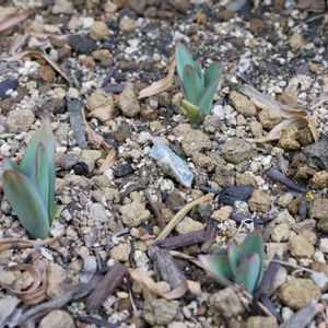 なんか割れて出てきたマクラータ 分球二か月で再度分裂する 昼にシゾバシスを一回り小さくし しばらく分裂せずに済むと安心していたら 表にいたマクラータが割れて中からなんか顔を出している シゾバシスは一球が2つに割れるんで言うても倍 割れた外皮の内側で4球になってるように見える そんな増え方ある・・・ニンニクか・・・ 9月に買った時に1ポットに5球だったのをばらした所 この手の球根は分けて植え替え後に調子に乗ると 2〜3ヶ月で分球するんで嫌な予感はしていた 鼠算じゃないかと戦慄している 増殖が早いのも困りもの