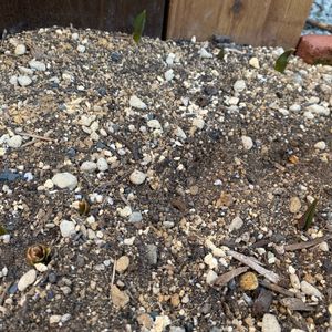 汚い花壇ですいません😅 ヒューケラを植えようとしていた門柱前。 土を入れようかなーと思って覗いてみたら、あれ…? 次男が「なんか芽が出てるよー!」 母「⁉️」「そんなはずは…⁇」 去年ここにチューリップを植えて球根を掘り上げたはず…その後に苦土石灰やら入れてかき混ぜたけど……?笑 どうやら、分球した小さい子達が残っていたようです😂 頑張って芽を出してくれたから、居残り組発見出来ました!笑 今年は花は咲かないだろうから移動したいけどかわいそうかな😅 ここは一年草を植えて秋まで待とうかな? みなさん芽が見えますか?8個くらいあります。探してみてください😆笑笑