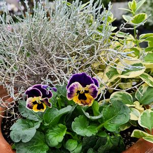 春っぽいカラーの寄せ植え 冬の間全然花が無かったぞうさんビオラがやっと咲いてきました💓長い鼻が可愛いです☺️