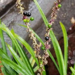 お庭のある蕎麦屋でみつけた ヤブランの実