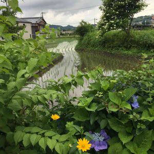 田植えが終わった田んぼの横に ガクアジサイが咲いてた💜✨✨