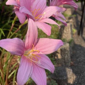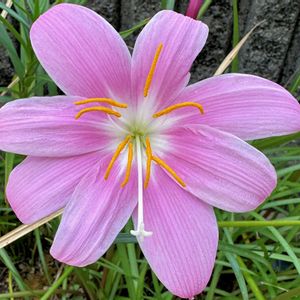 《「サフランモドキ」or 「レインリリー」》ダンディ邸にて🤭 中央アメリカ原産で、江戸時代に日本に渡来しました🤭 花は鮮やかな桃色で、6枚の花被片と6本の雄しべ、1本の雌しべを持ちます🌸 なんともこの花の姿が美しいですね😍 「レインリリー」という英名があり、雨が降った後に開花することが多いのが特徴です🤭🌸
