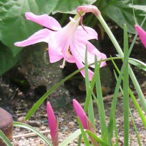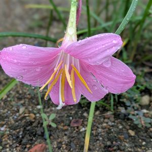 ピンク色が目を引くお花です😊 ゼフィランサス。 サフランモドキとも。 ヒガンバナ属タマスダレ属のお花。 きれいな形のお花です。英名ではレインリリーとも呼ばれるよう。つぼみも素敵な形です🤗