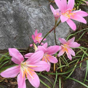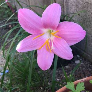 煉瓦にちょこんと サフランモドキ 😀 別名:ゼフィランサス カリナタ ヒガンバナ科