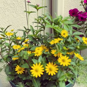 ①② ゴンフレナ ラブラブラブ 💓 昨年の挿し芽が冬越しして咲いてくれましたꔛꕤ親株は🌟に𓏧 ピンクのお花の先の黄色がキラキラ✨に見えます(*ˊ˘ˋ*)♡♡ ③ルドベキアキャラメルミックス まだ高さもなくコンパクトな姿です。ブラウンとオレンジが混ざったような色🧡触るとパリパリした感触だけど乾燥してる? ④サニープリンセス👸 株がグラグラして種もいっぱい出来てしまっていたので、切り戻し✂️し鉢を小さくしました😅少しグラつきおさまったかな。株元に溢れダネが発芽してます💦このままで良いのかな? ⑤手まり珊瑚🪸 切り戻し✂️からのやっとお花咲き始め。 でもやっぱり乱れていびつ😂 伸びた枝に咲いたお花の重みで枝垂れて広がってしまう。 お花は素敵なんだけどな😑