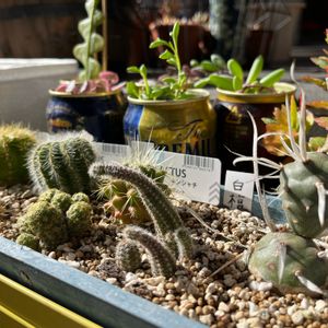 サボテン🌵 初めて登場🙌 手前から 金星丸・黄星丸・金鯱・姫栄冠丸・マグニフィクス・金晃丸は土の色と同化して見えてないかも😆