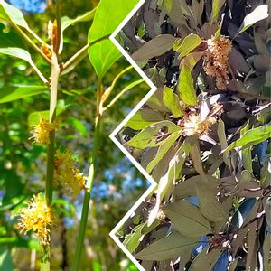 シロダモ(白だも)/雄花 びっちりと咲いていました♡ 黄褐色の小花が葉の付け根に密密に集まって、 地味だけどフワッと可愛い感じです💛 花が実になるまで丸一年かかり、花と実が同時に見られる珍しい木🌿(ただし私が出会ったのは雄木なので、、 実を見ることはないです💦)雌雄異株🌿 実はロウソクの原料や灯火に🌱