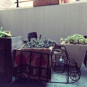 おはようございます☺ 今日はセダムと白雪ミセバヤさんのコラボです🌱 ド素人が見よう見まねで作った 鳥かご(風)オブジェにインしてます(´・∀・)プッ もっと上手くワイヤーを操れるようになりたいyo! ○| ̄|_