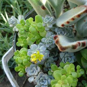 こんにちは♪ ☁️何ですけど太陽光が何となく届いている天気です😊 多肉ちゃん達には良いんじゃないかな!と😎💕 今改修工事中の所に置いて見ました✌️ この間購入した多肉ちゃんです🤗 (普段はまだ日陰に待機中ですが😁) 吊るして見たけど乾燥している状態で↑の部分が重さで下がっととる😱 強度不足だぁ😱😭 《白雪ミセバヤ:ムラサキベンケイソウ属orセダム属》 《タイトゴメ:セダム属》 《花の相府連:エケベリア属》 《アラン:エケベリア属》