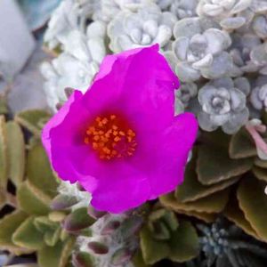 寒いけど、一瞬でも日が差すとうれしいね~💕 ポーチュラカウェーデルマニーのかわいい花が咲いていた🌼 周りは白雪ミセバヤやセダム、多肉ハーブです🌿