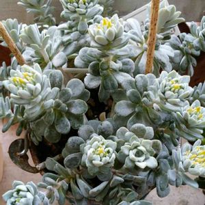 こんばんは。今回は初めて夕方の投稿となりました。この冬を元気に越した白雪ミセバヤです。下の鉢が小さくて植え替えなきゃいけないかな?