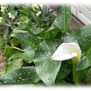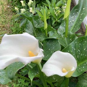 地植えのカラー✨ 昨年より株が大きくなって 花芽も多く控えています🤍💕 クリスマスローズもまだ蕾があって もう暫く楽しみます✨💖😊