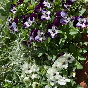 今日は雨なので☔️ 昨日の小さな花壇より✨ 最近、成長著しい植物たち🌱🌿💚 わさわさ伸び放題で✂️✂️ まだ可愛いく咲いてくれてるので🤍💜💚 植え替えはもう少し先ですね✨😊🌸