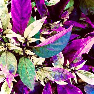 午後の庭から🍨 【芸術の秋🎨】 カプシカム パープルフラッシュ 葉っぱを楽しむ斑入りのトウガラシです🌶 地味な感じだったので絵画風に変身させてみました😄