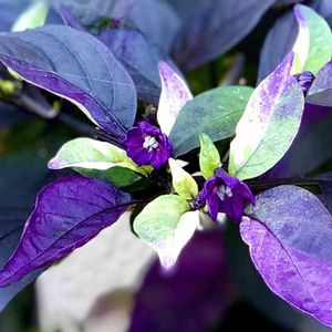 午後の庭から☕️ 【小さな💜お花が咲いたよ】 カプシカム パープルフラッシュの お花が咲いたらこんな感じ😃 コレが本当の色😅